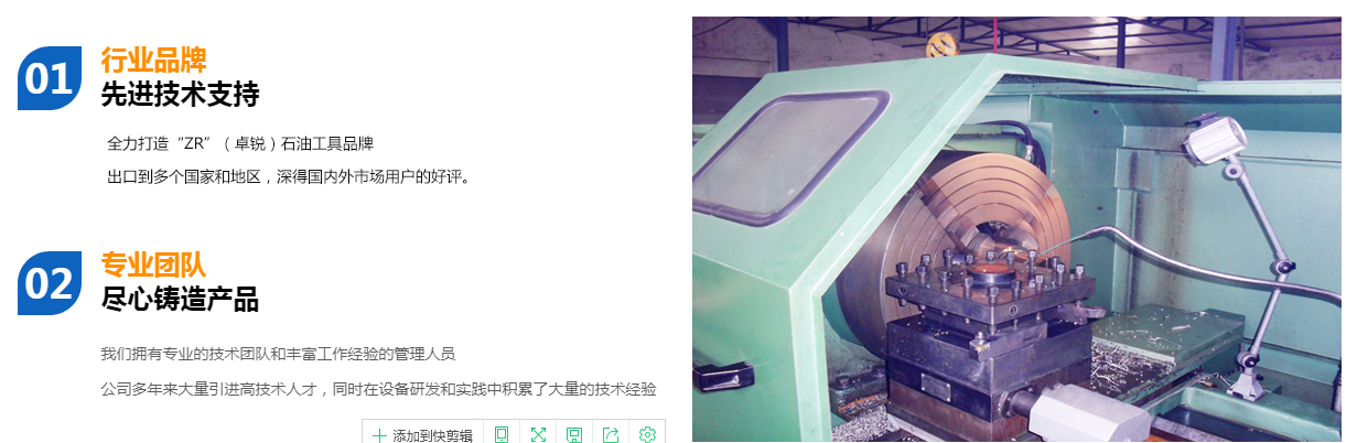 德州卓銳石油機械有限公司成立于2008年10月,專業(yè)生產螺桿鉆具拆裝架、無磁懸掛短節(jié)、螺桿鉆具配件、螺桿清膠機、PDC平面軸承、可調鉆具配件、360度全旋轉拆裝架、螺桿鉆具整機試驗臺、螺桿鉆具馬達試驗臺、渦輪鉆具配件、等壁厚螺桿定子加工機床、等壁厚螺桿鉆具等石油鉆井工具,打撈工具,固井工具及其配件。公司確立并始終堅持不懈地發(fā)揚“誠信,務實,高效,創(chuàng)新”的企業(yè)精神全力打造“ZR”(卓銳)石油工具品牌。業(yè)務實現(xiàn)了快速發(fā)展,并得到業(yè)內人士的廣泛認同,成為石油裝備制造業(yè)一顆璀璨的新星。